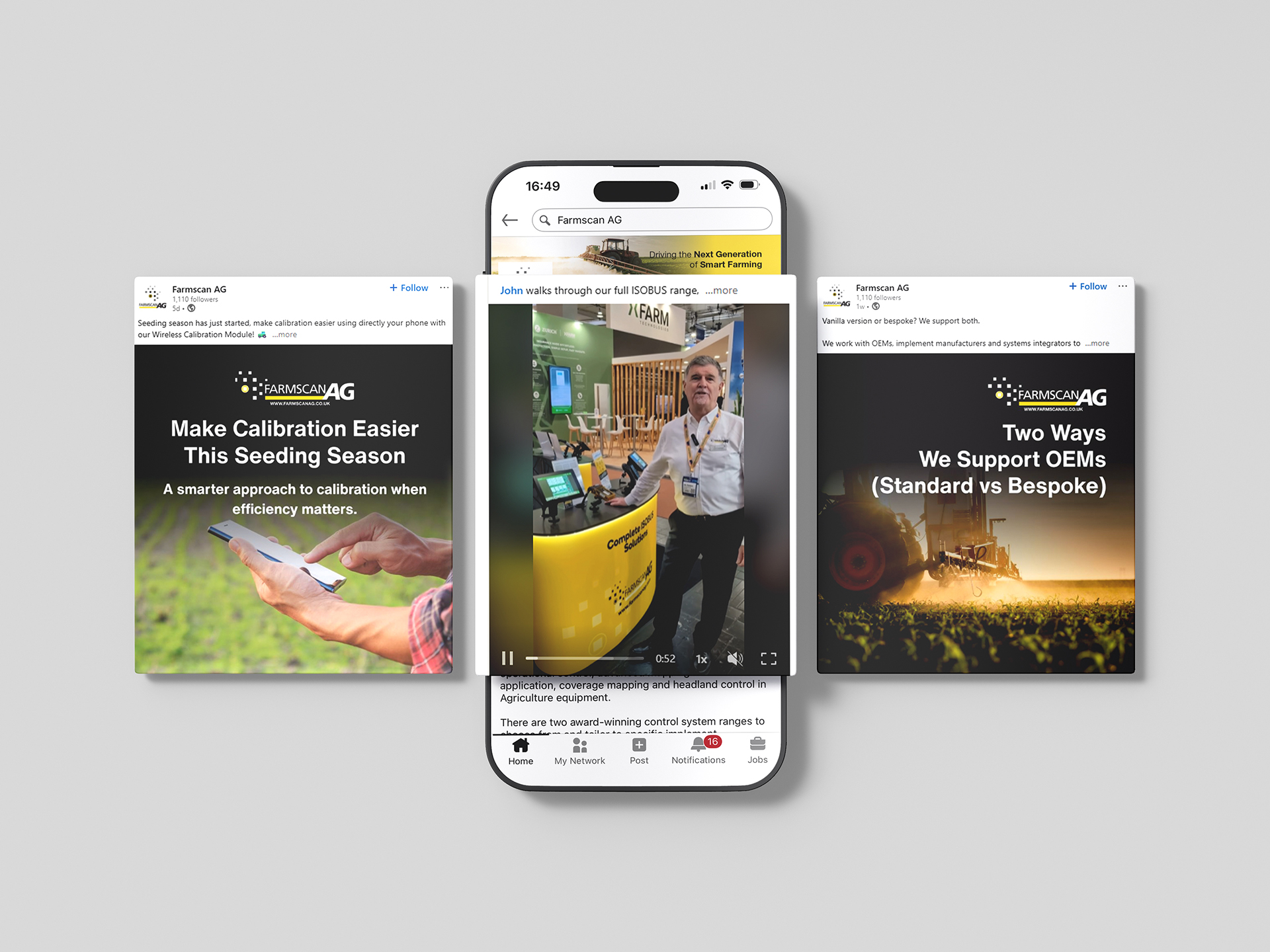 House of Marketing supports Farmscan AG with ongoing marketing and communications support across the agricultural technology sector. Our work includes social media, EDM communications, technical content writing, collateral development, website management, and business development support, along with assisting in the planning and creation of videos and event materials for global agritech exhibitions and industry events. We also work closely with industry partners and stakeholders to support clear communication, strengthen market presence, and ensure Farmscan AG’s brand and product messaging reflects the technical capability and innovation behind its agricultural technology solutions.