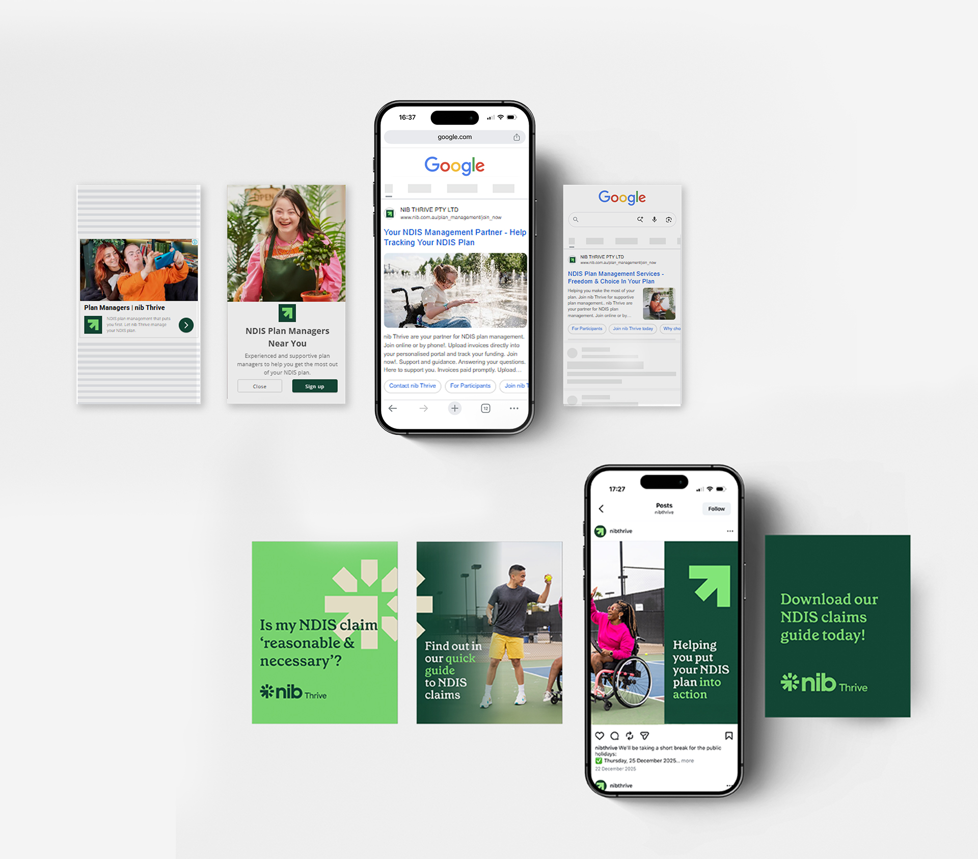House of Marketing supports nib Thrive, an NDIS Plan Management business, with digital marketing and strategic support designed to strengthen visibility and drive growth. Our work includes paid digital advertising across Google and Meta, alongside website support and broader marketing strategy guidance. By combining performance-focused digital activity with ongoing strategic input, we help nib Thrive build awareness, reach the right audiences, and support business growth in a highly competitive market.